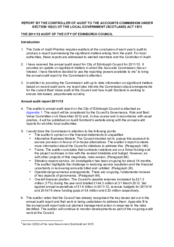 Statutory report on the 2011/12 audit of the City of Edinburgh Council.