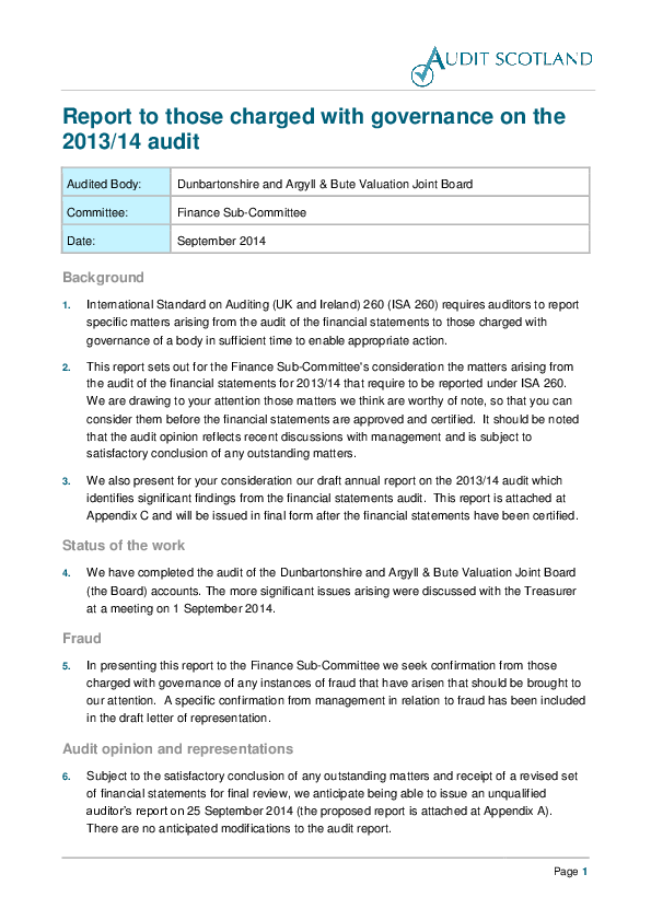Dunbartonshire and Argyll & Bute Valuation Joint Board annual audit