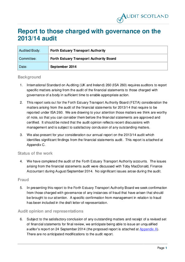 Forth Estuary Transport Authority annual audit