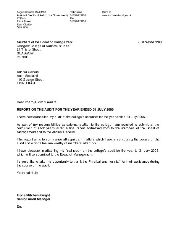 Glasgow College of Nautical Studies annual audit