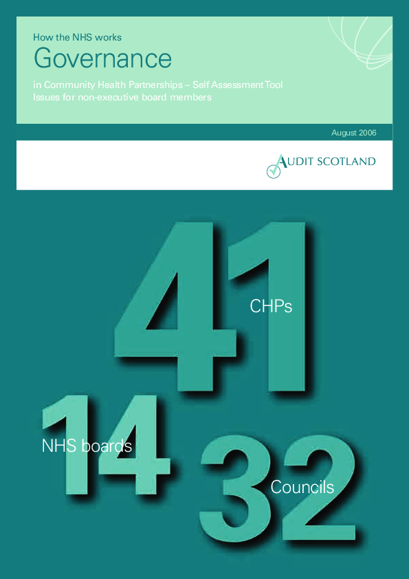 health, governance, community health partnerships How the NHS works: Governance in Community Health Partnerships - Self Assessment Tool: Issues for non-executive board members