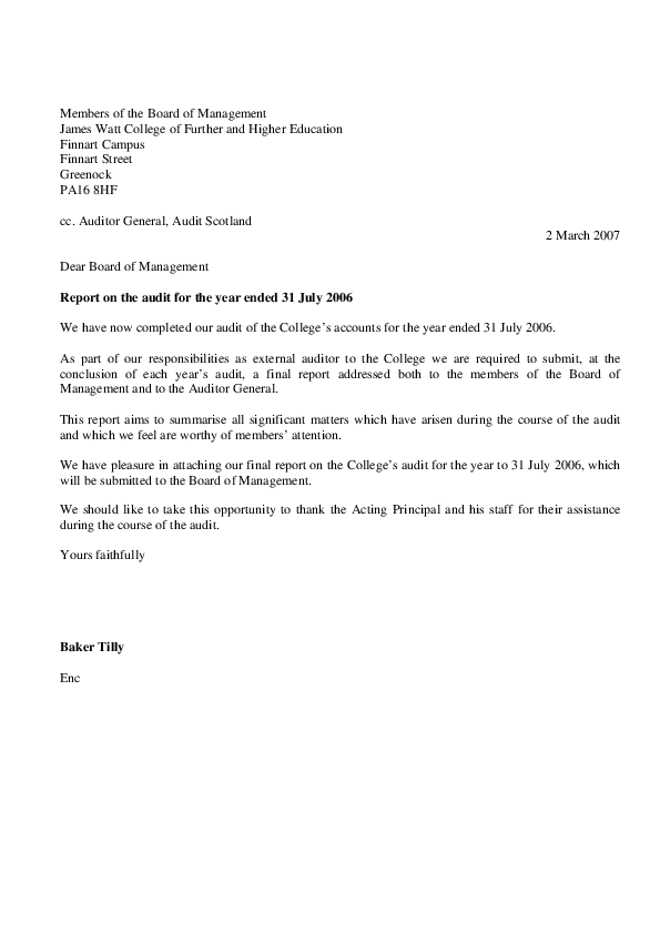 James Watt College annual audit