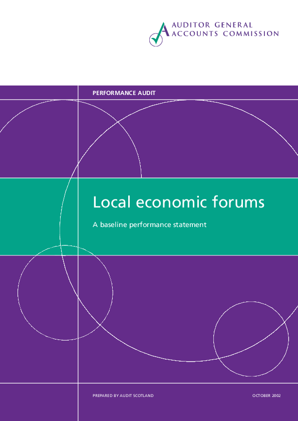 This report establishes the position inherited by Local Economic Forums (LEFs) and will be used as a benchmark to measure their progress in streamlining the way public sector bodies provide support services to businesses. This preliminary report outlines the problems that currently exist and how the LEFs propose to tackle them. In a follow up report, Audit Scotland will look in more detail at the economic development services provided to businesses in Scotland by councils and local enterprise companies, as well as the role of LEFs.