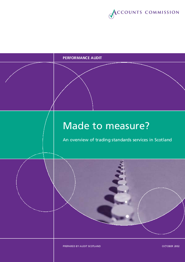 The Accounts Commission for Scotland is encouraging Scottish councils to join up their trading standards services. The Accounts Commission has found that the level and quality of service varies depending on where you live and that councils with larger trading standards services tend to provide a better quality and range of service than their smaller counterparts.