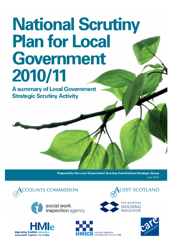 The National scrutiny plan provides a summary of the scrutiny activity for each council in Scotland. The information is based on the risk assessment and scrutiny plans drawn up for each council and contained in the Assurance and Improvement Plan, (AIP).