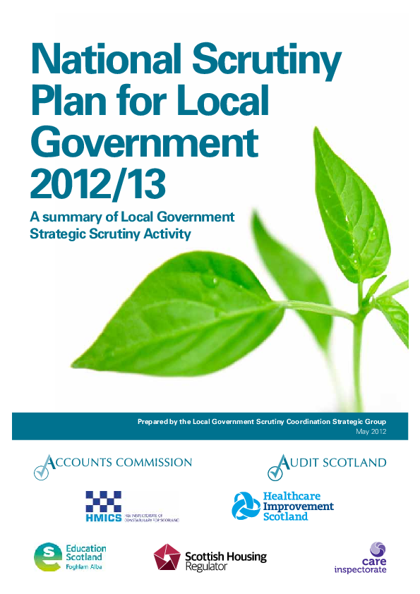The National scrutiny plan provides a summary of the scrutiny activity for each council in Scotland. The information is based on the risk assessment and scrutiny plans drawn up for each council and contained in the Assurance and Improvement Plan, (AIP).