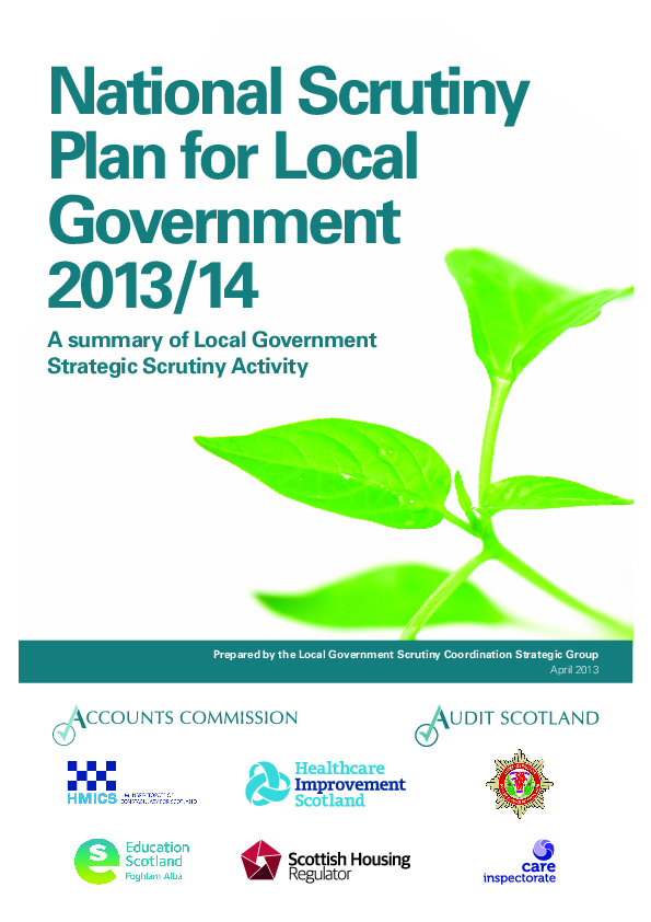 The National scrutiny plan provides a summary of the scrutiny activity for each council in Scotland. The information is based on the risk assessment and scrutiny plans drawn up for each council and contained in the Assurance and Improvement Plan, (AIP).