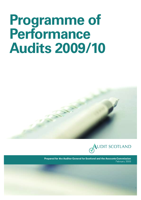 This sets out the Audit Scotland programme of national performance audits for 2009/10.