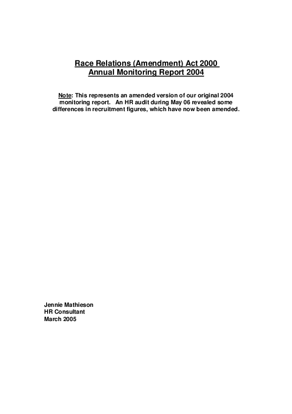 Report: Race Relations (Amendment) Act 2000 - Annual Monitoring Report 2004