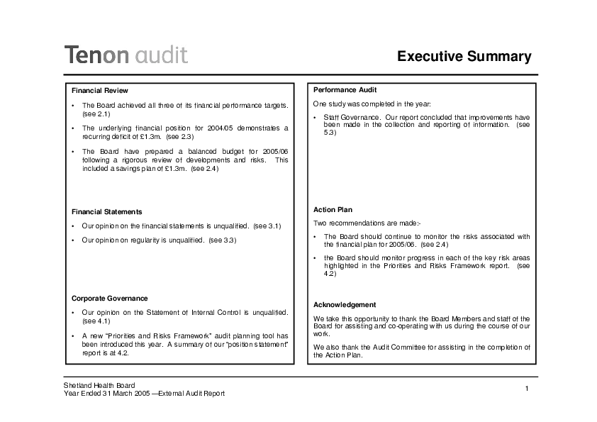 Report: Shetland Health Board annual audit