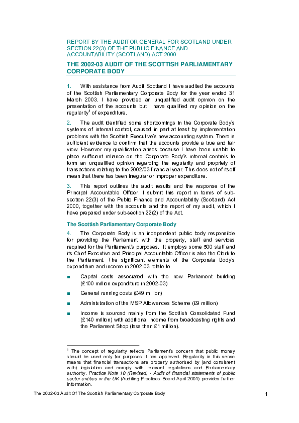 The 2002/03 audit of The Scottish Parliamentary Corporate Body