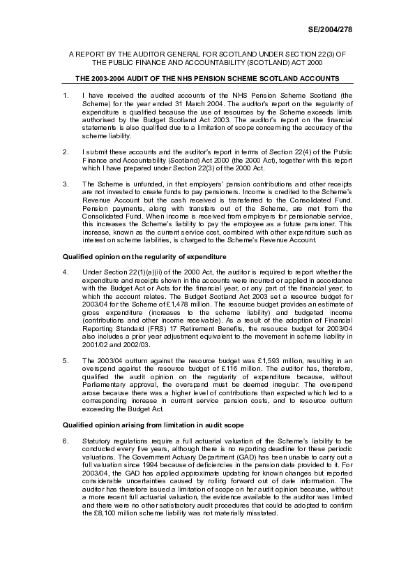 The 2003/04 audit of the NHS Pension Scheme Scotland Accounts