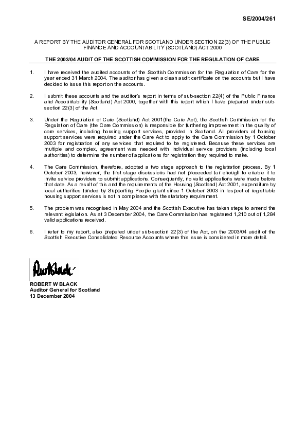 The 2003/04 audit of the Scottish Commission for the Regulation of Care