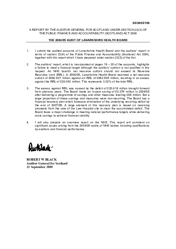 Report: The 2004/05 audit of Lanarkshire Health Board
