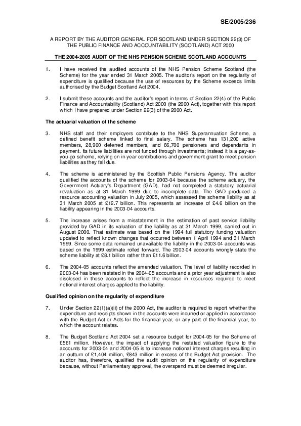 The 2004/05 audit of the NHS Pension Scheme Scotland accounts