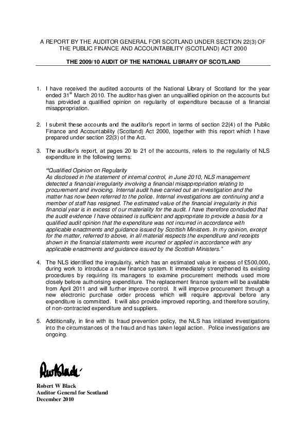 Complaints about Audit Scotland, Accounts Commission and the Auditor General for Scotland