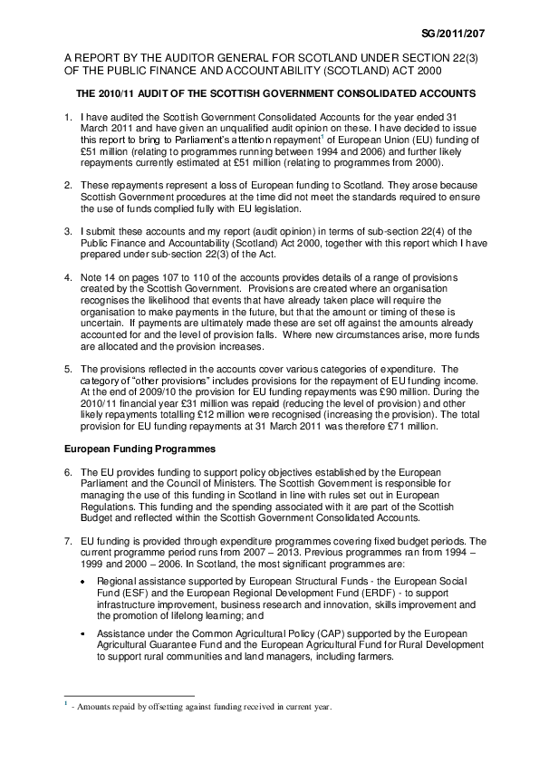 The 2010/11 audit of the Scottish Government Consolidated Accounts