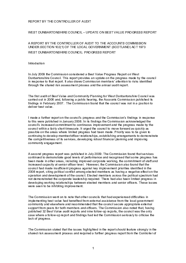 Report: Update on West Dunbartonshire Council Best Value progress report